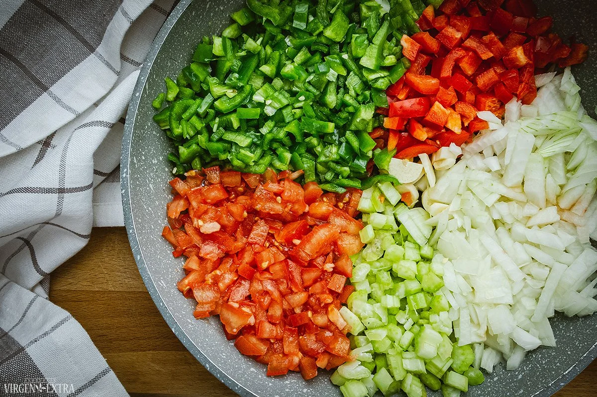Sofrito daržovių padažo ingredientai | Andalūzija. Virgen Extra